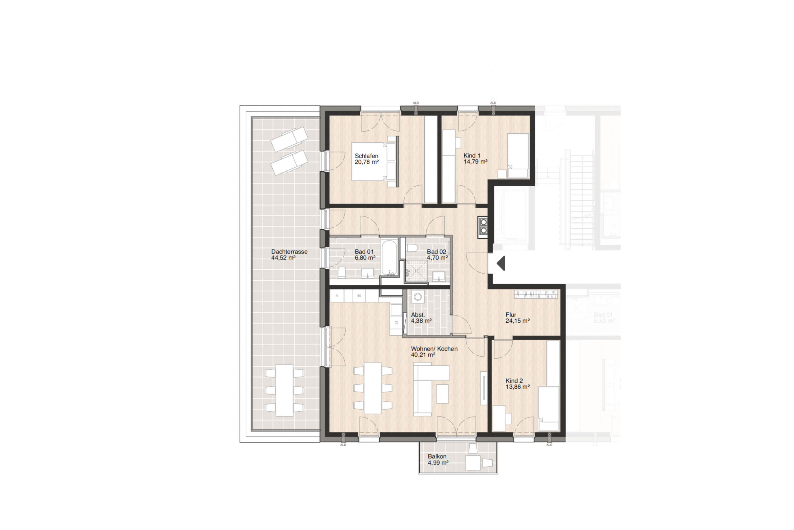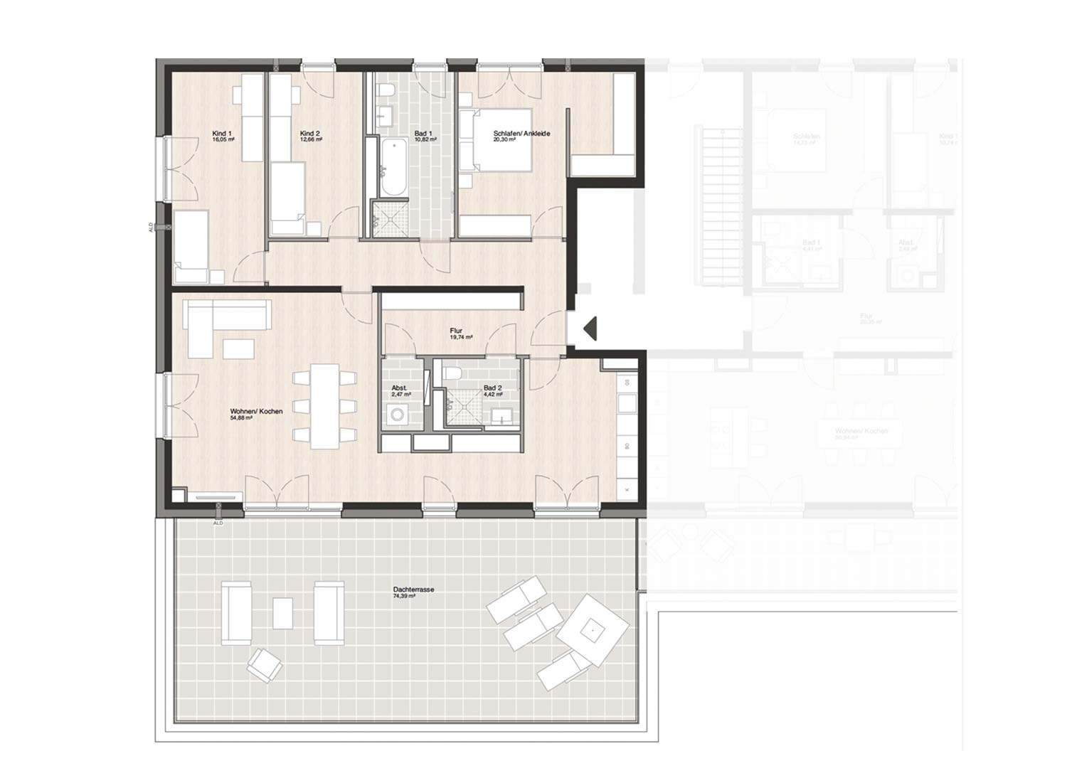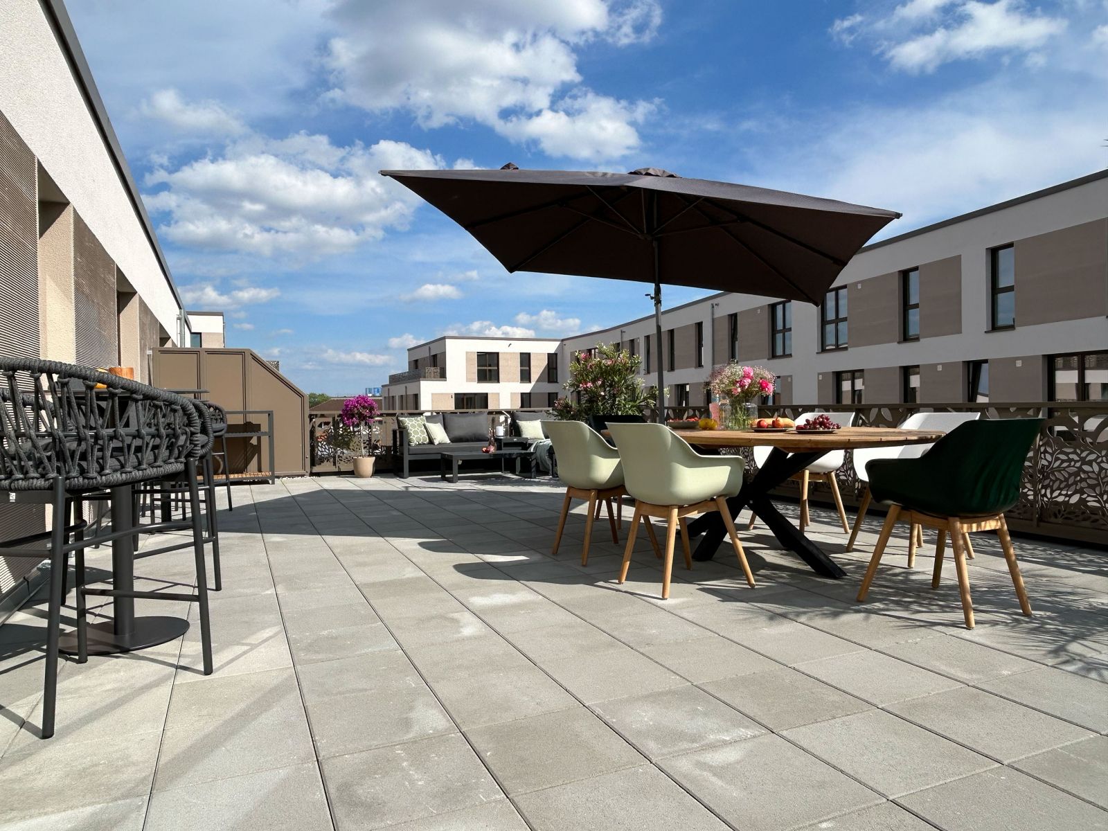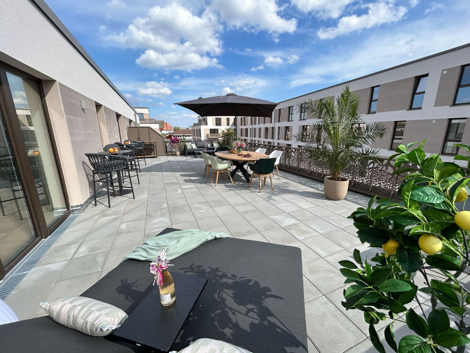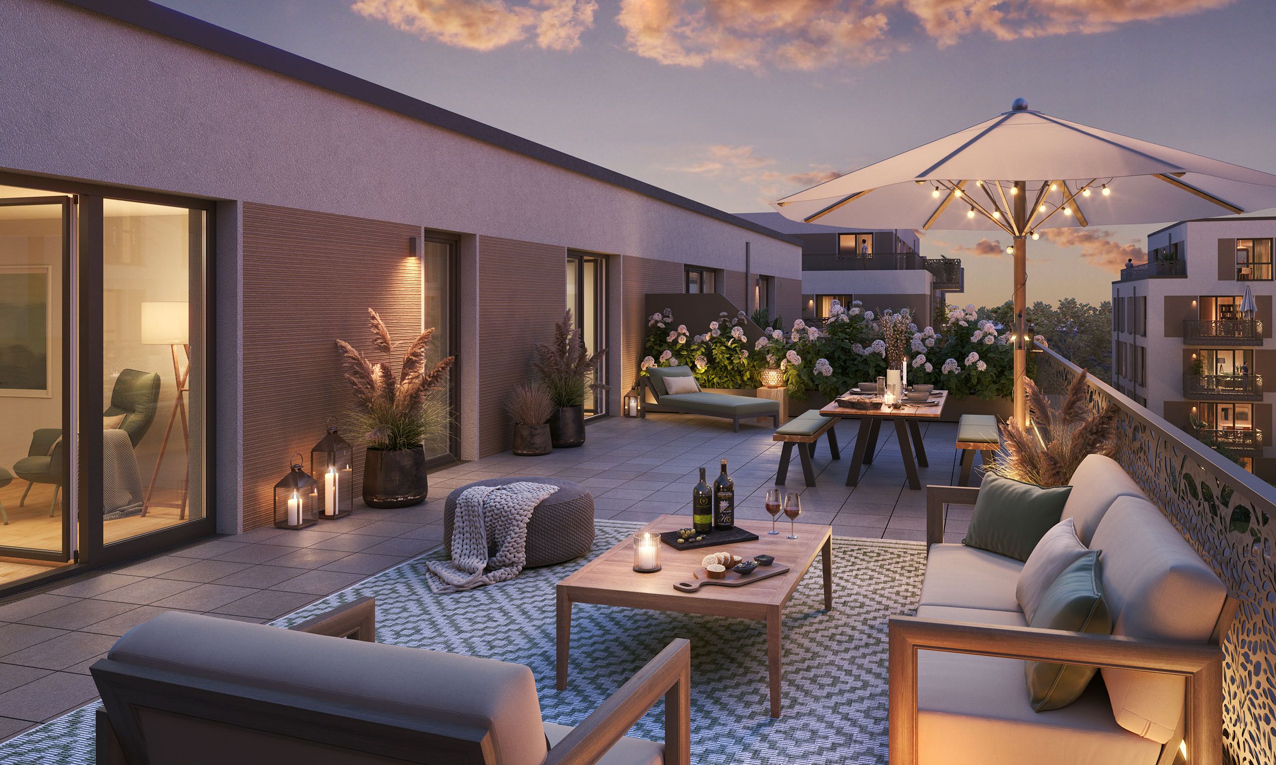 Die Eigentumswohnungen im Projekt Wohnen am Französischen Garten bieten eine hohe Lebensqualität durch modernen Wohnkomfort und private Außenbereiche. Die sehr großzügigen Dachterrassen der oberen Etagen schaffen Raum für entspannte Stunden im Freien und ermöglichen Ihnen frische Luft, wärmende Sonnenstrahlen, einen Kaffee oder ein Glas Wein und dazu ein gutes Buch in privater Atmosphäre zu genießen.