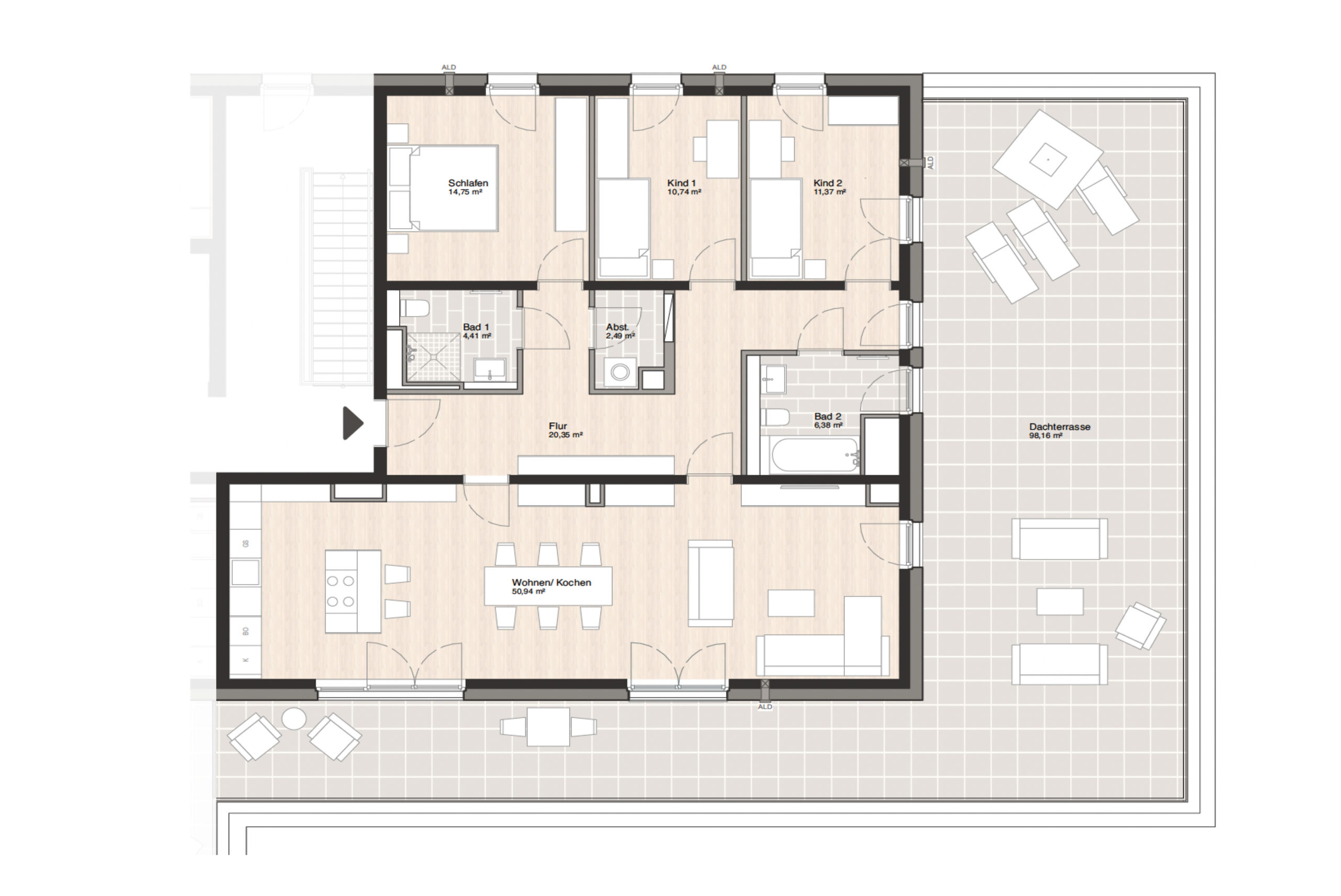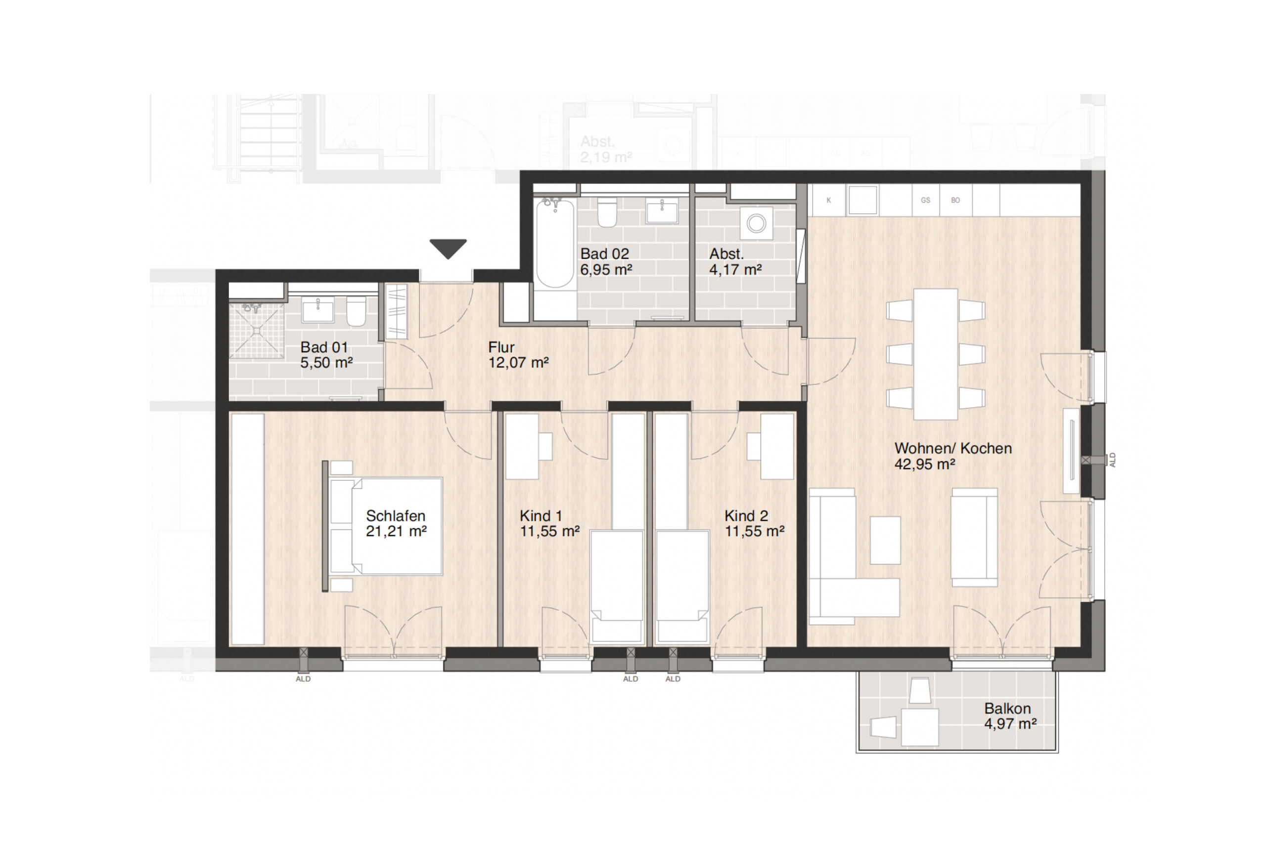 Durch hochwertige Materialien und eine durchdachte Raumgestaltung vereinen die Wohnungen eine geschmackvolle Ausstattung mit einem behaglichen Wohngefühl. So wird Ihr Zuhause zu einem Ort, an dem Sie sich rundum wohlfühlen und Ihren Alltag entspannt genießen können.