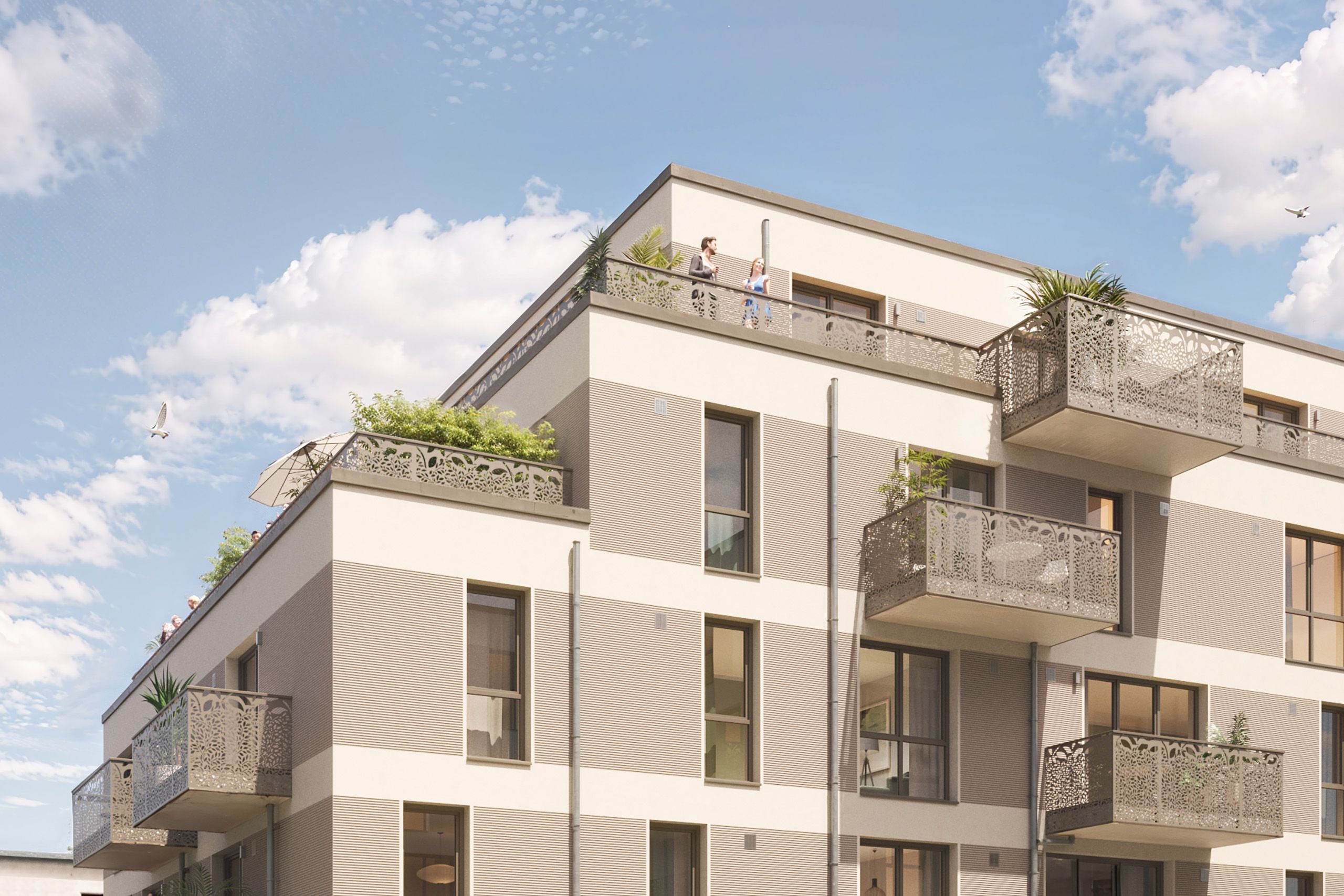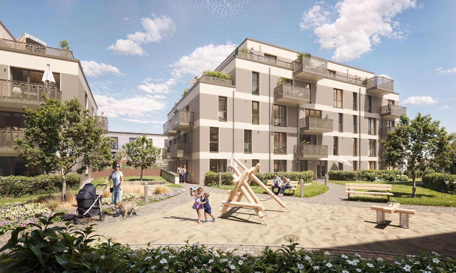 In den Erdgeschosswohnungen bieten private Gärten zusätzlichen Platz zur individuellen Nutzung – ideal für alle, die eine persönliche Grünoase für sich, die Kinder oder den geliebten Vierbeiner schätzen. Ergänzt wird das Angebot durch stilvoll gestaltete Balkone, die nicht nur die Wohnungen bereichern, sondern auch das architektonische Gesamtbild des Wohnbauprojektes in Anmutung an den Französischen Garten prägen und jenem einen unverwechselbaren Charakter verleihen.